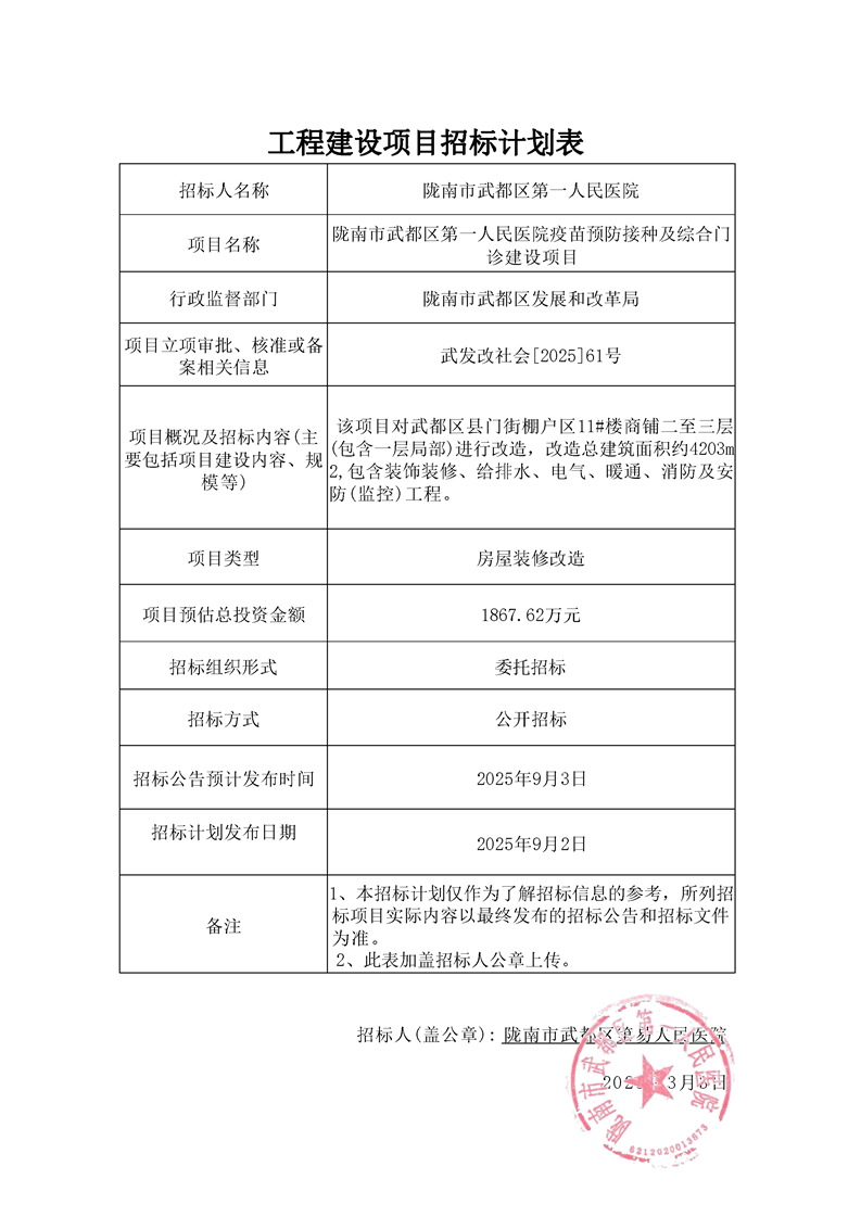 隴南市武都區(qū)第一人民醫(yī)院疫苗預(yù)防接種及綜合門(mén)診建設(shè)項(xiàng)目
