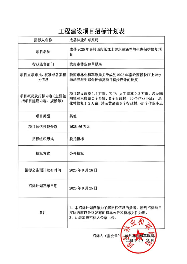成縣2025年秦嶺西段長江上游水源涵養(yǎng)與生態(tài)保護(hù)修復(fù)項目