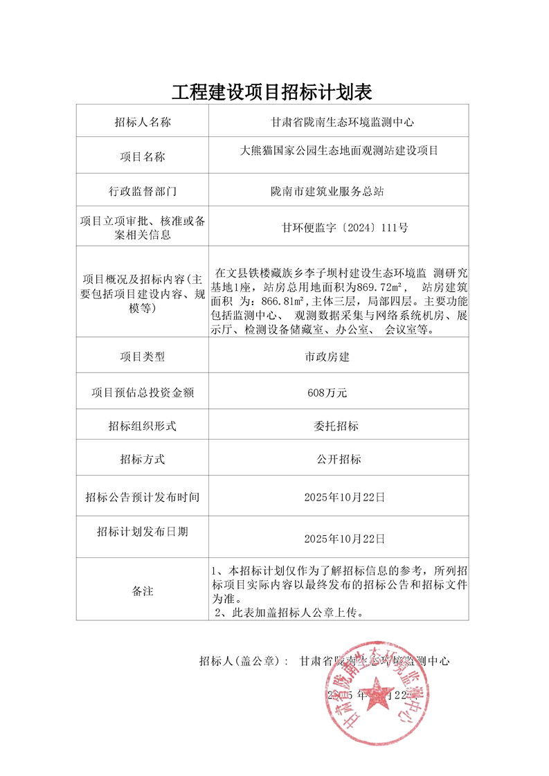 大熊貓國家公園生態(tài)地面觀測站建設(shè)項(xiàng)目