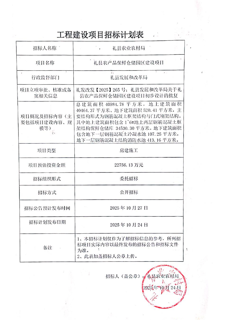 禮縣農(nóng)產(chǎn)品保鮮倉儲園區(qū)建設(shè)項(xiàng)目