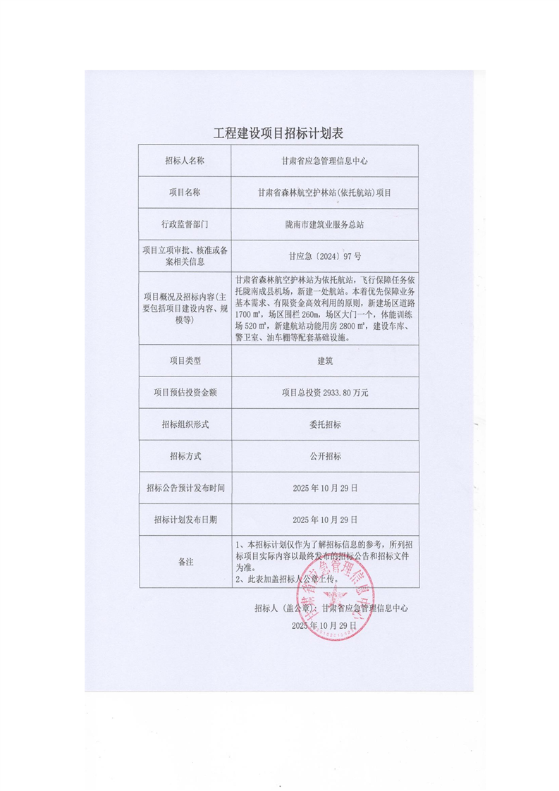 甘肅省森林航空護(hù)林站(依托航站)項目
