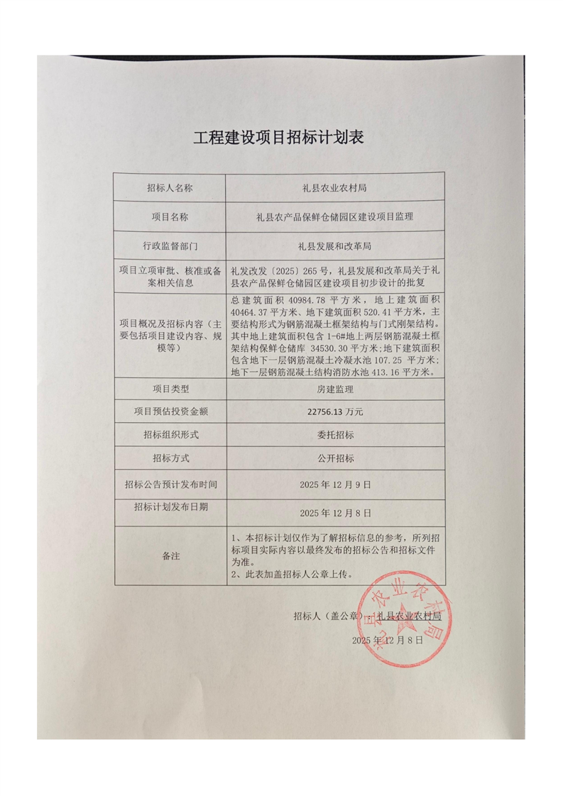 禮縣農(nóng)產(chǎn)品保鮮倉儲園區(qū)建設(shè)項目監(jiān)理