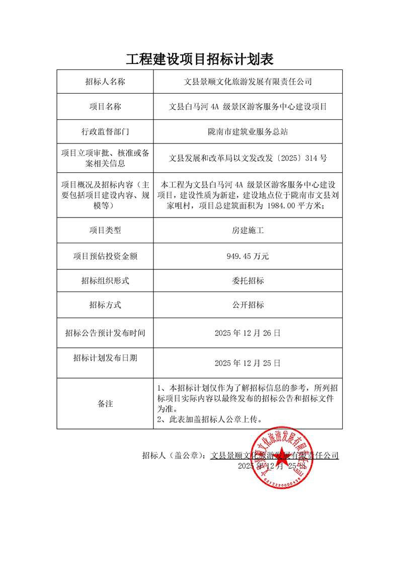 文縣白馬河4A級(jí)景區(qū)游客服務(wù)中心建設(shè)項(xiàng)目