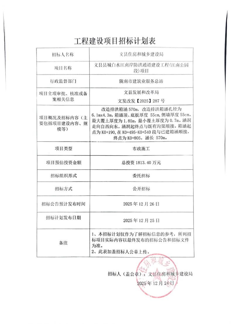 文縣縣城白水江南岸防洪通道建設(shè)工程(江南公園段)項目