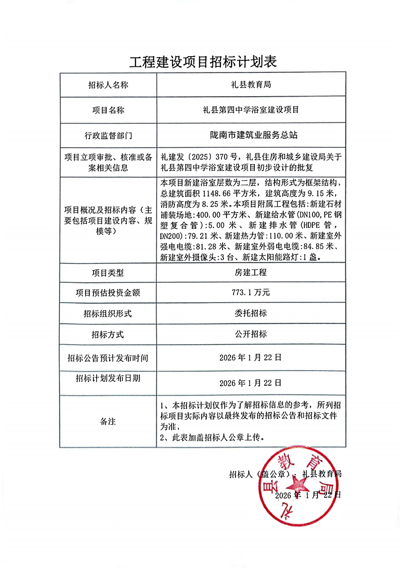 禮縣第四中學浴室建設項目
