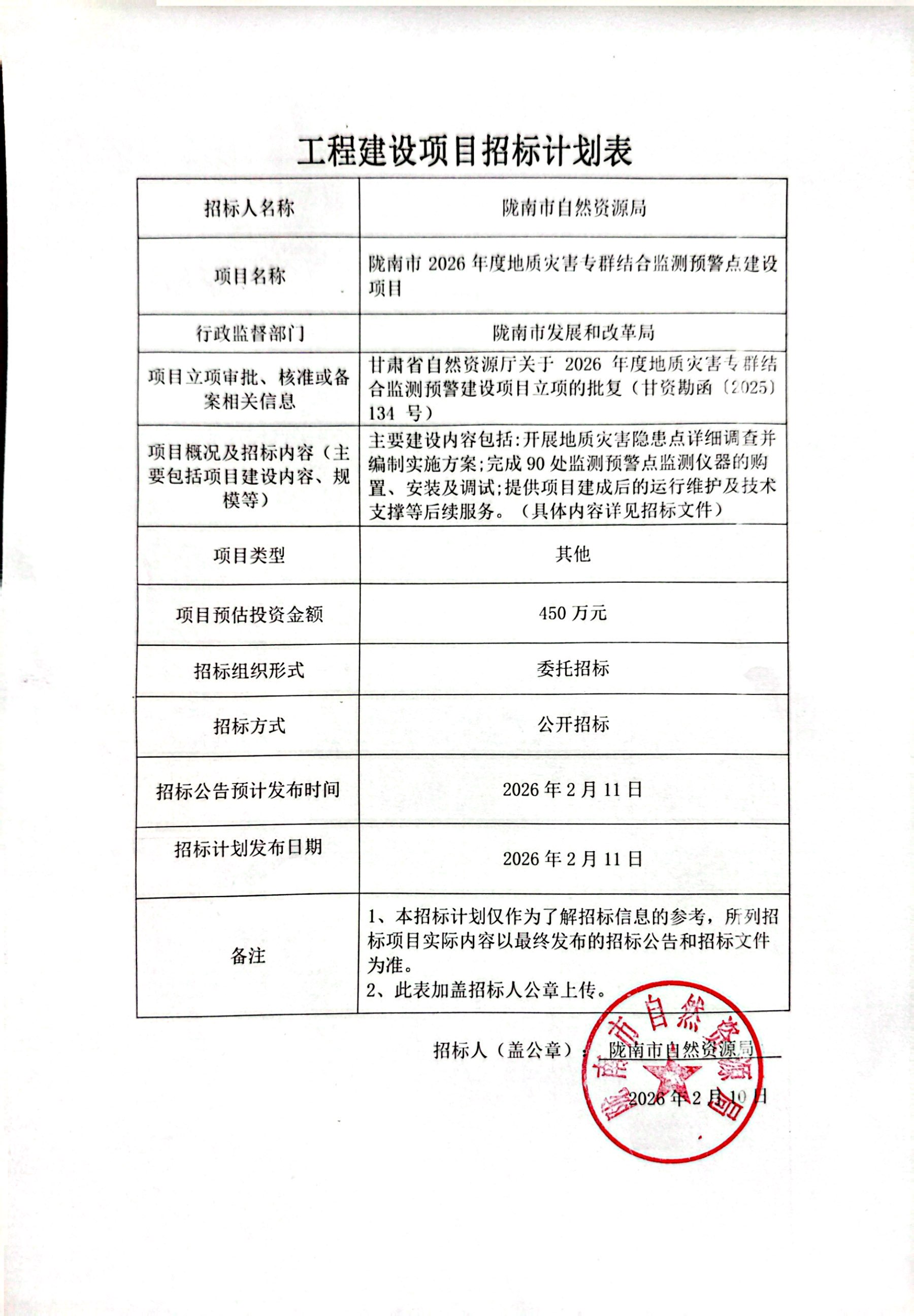 隴南市2026年度地質(zhì)災害專群結(jié)合監(jiān)測預警點建設項目