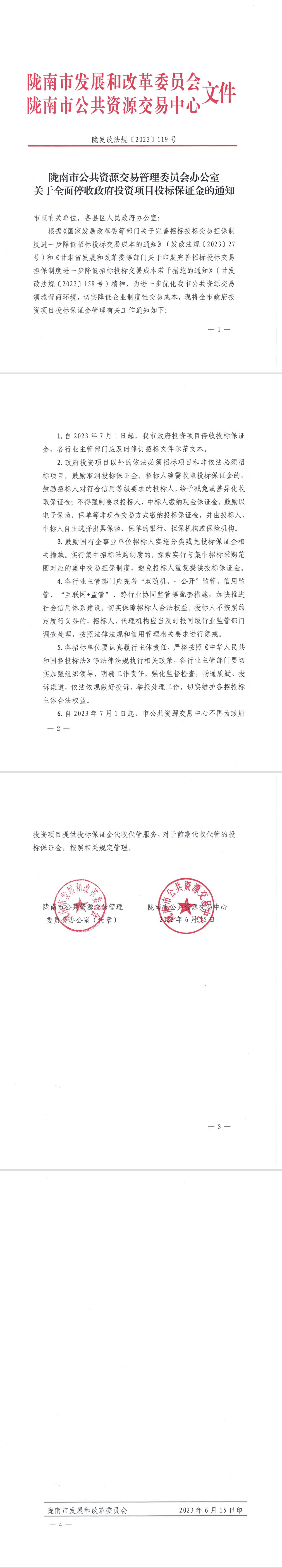 關于全面停收政府投資項目投標保證金的通知