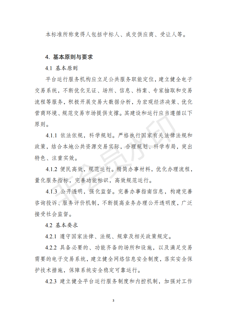 ??一、各地區(qū)應(yīng)根據(jù)有關(guān)法律法規(guī)及《標(biāo)準(zhǔn)》,按照簡(jiǎn)化流程、提高效率、公開透明的要求,結(jié)合本地實(shí)際,制定本行政區(qū)域的公共資源交易平臺(tái)服務(wù)標(biāo)準(zhǔn),以標(biāo)準(zhǔn)化推進(jìn)全流程電子化、服務(wù)便捷化。